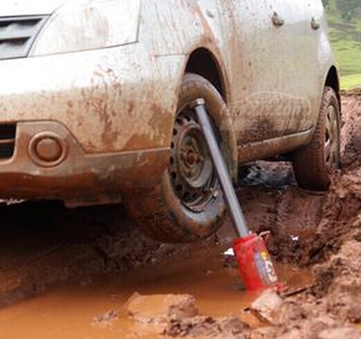 再就是,千斤頂的頂端是頂在了輪胎上,并且只有一半的接觸面積,這樣輪胎一動就會出現掉墜的情況,汽車會再次重重落入泥坑里。
